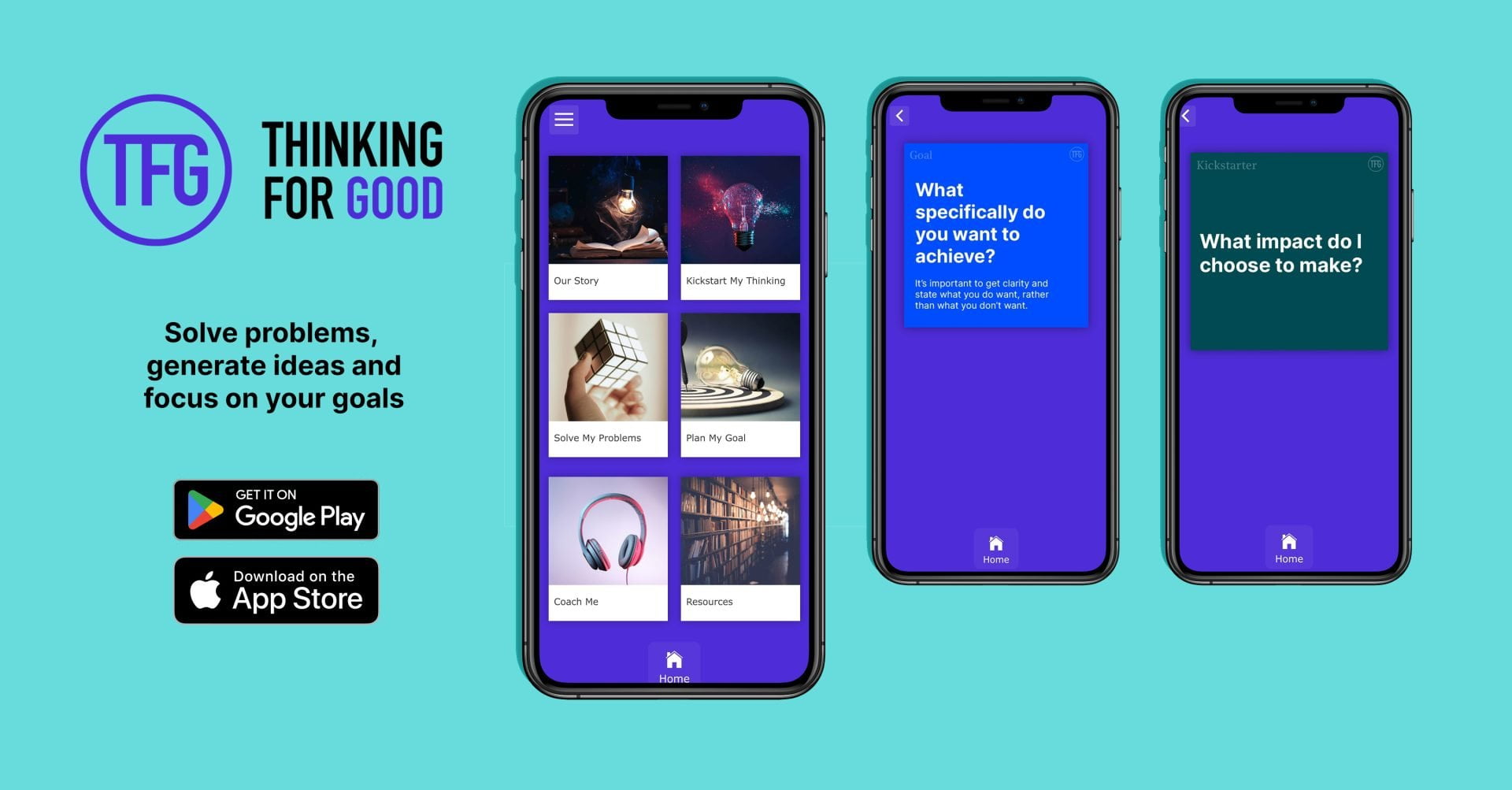 Master the power of thinking with practical resources to solve problems fast, generate ideas and focus on your goals with our Thinking For Good app.